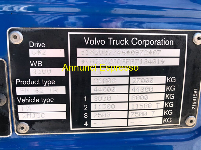 Camion Volvo FM 11 450 EURO 6 CABINA B prezzo EUR.100,00 X INFO: DOMENICO GRAZIE RIF. 1427 VOLVO FM 11 450 EURO 6 CABINA BASSA ANNO 2015 PRIMO ASSE BALESTRATO 8 TONNELLATE, TERZO ASSE INTELLIGENTE E SOLLEVABILE CARROZZABILE FINO A MT. 6. 80 CAMBIO MANUALE + FRENO RETARDER PASSO 4300 PRIMO ASSE 8 TON. KM 800. 000 LARGHEZZA TELAIO CM. 84, LUNGHEZZA MT. 6. 50 -GOMMATO 50% CON CERCHI IN LEGA -PORTA OGGETTI -RADIO -CLIMATIZZATORE AUTOMATICO+WEBASTO -TETTUCCIO APRIBILE ATTREZZATURA SCARRABILE NUOVA MARCA MEC 30 TON. XL CON POSSIBILITA\' DI CREDITO D\'IMPOSTA O 4. 0 IN PRONTA CONSEGNA LUNGHEZZA MT. 6. 10 Andria (BT)