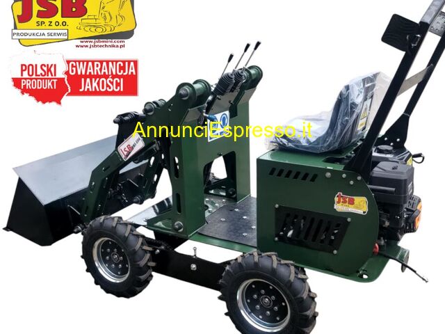 Caricatore-escavatore altro MINI PALA GOMMATA MS-L116 prezzo EUR.7.035,00 Caratteristiche tecniche della mini pala gommata MS-L116: - Anno di produzione: 2025 - Dimensioni: larghezza x lunghezza x altezza - 1040 mm (940 mm*) x 2300 mm x 1650 mm - Peso: 640 kg - Temperatura di esercizio: da -10?C a +45?C - Motore: Lifan 16 CV Pb95 (diesel opzionale) - Potenza: 13-15 CV (10, 5 kW) - Carburante: benzina Pb95 / diesel - Equipaggiamento standard: o Benna di carico con larghezza di 100 cm e capacit? di 150 litri o Uscita idraulica per l'azionamento di un martello o di un impianto di perforazione - Parametri operativi: o Altezza di sollevamento: 160 cm (200 cm*) o Capacit? di abbassare la benna nella trincea: fino a -30 cm o Impianto idraulico di produzione polacca: capacit? 20 l/min, pressione 160 bar, velocit? 2200 giri/min. - Garanzia: 12 mesi Opzioni aggiuntive: - Moderne luci di lavoro a LED - Motore diesel da 11, 5 CV - Rimorchio per il trasporto di attrezzature e macchina (categoria ?B?) Accessori opzionali disponibili: - Alimentatore Castel d\'ario (MN)