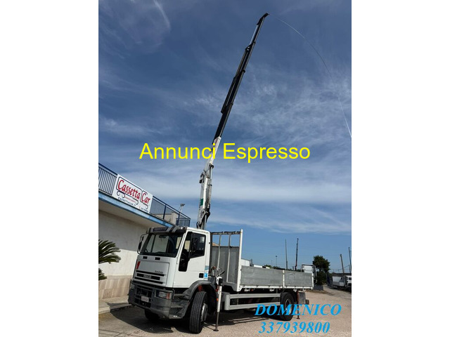 Altro Iveco EUROCARGO 170E27 CASSONE alimentazione diesel prezzo EUR.100,00 immatricolata 1998 629266Km X INFO: DOMENICO [NUM] GRAZIE RIF, 1575 IVECO EUROCARGO 170E27 CASSONE FISSO+GRU CON RADIOCOMANDO GRU BONFIGLIOLI MODELLO P 10200 L, 4 SFILI + 1 MANUALE ALTEZZA MT. 15. 20 CON 4 PIEDI STABILIZZATORI REVISIONATO PASSO 5175 ANNO 1998 KM 629266 PORTATA UTILE 87 Q. LI, COMPLESSIVA 180 Q. LI CAMBIO MANUALE 9 MARCE ZF RADIO TETTUCCIO 3 POSTI IN CABINA RADIOCOMANDO HETRONIC MODELLO NOVA CON 2 BATTERIE GOMMATO NUOVO BALESTRATO 315/80 R 22. 5 MISURE CASSONE: LUNGHEZZA MT. 6. 35, LARGHEZZA MT. 2. 55, ALTEZZA SPONDE CM. 0. 60 Camion con gru estensibile, modello recente, adatto per alti sollevamenti. Ottimo stato meccanico, disponibile per uso professionale. Ideale per cantieri e lavori edili. Altezza massima di sollevamento elevata. Contattare per dettagli e prezzo. Andria (BT)