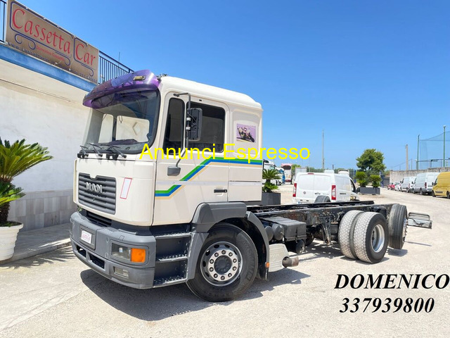 Altro Man 26 414 F ADR TUTTE L alimentazione diesel prezzo EUR.100,00 immatricolata 2000 975000Km X INFO: DOMENICO [NUM] GRAZIE RIF. 1517 MAN 26 414 F ADR TUTTE LE CLASSI TELAIO ANNO 2000 KM 975000 PASSO 4100 CABINA BASSA CAMBIO MANUALE TERZO ASSE INTELLIGENTE GOMMATO 60% Camion usato marca MAN, modello non specificato. Colore bianco con dettagli verdi. Possiede cassone e sistema di illuminazione sul tetto. Condizioni buone, pronto per lavoro. Contatti: Domenico, [NUM]. Andria (BT)
