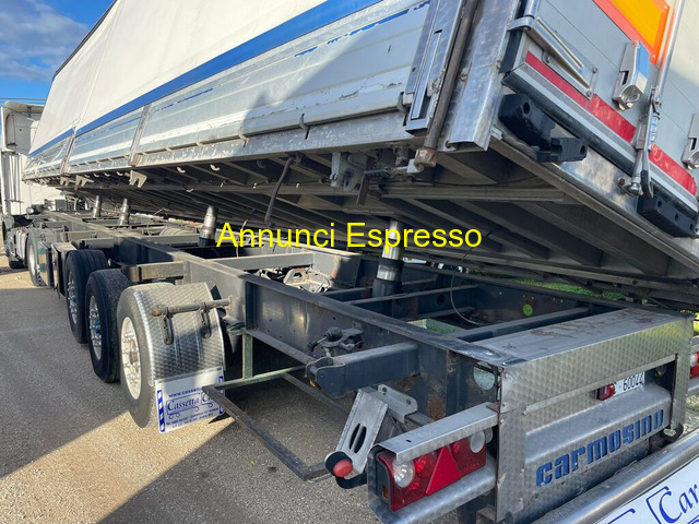 Ribaltabile Carmosino RIB. BIL. DOPPIA CASSA prezzo EUR.100,00 X INFO: DOMENICO RIF. 1487 SEMIRIMORCHIO RIBALTABILE BILATERALE DOPPIA CASSA CARMOSINO CON CENTINA COPRI E SCOPRI CON DOPPIA APERTURA ANTERIORE E POSTERIORE, ALZA E ABBASSA RIBALTAMENTO AUTONOMO CON PRESA DI FORZA ELETTRICA PIANALE ALLUMINIO PIANTONI SCORREVOLI IN ACCIAIO ANNO 2003 ABS PORTATA UTILE KG 29640 PRIMO E TERZO ASSE SOLLEVABILE, TERZO ANCHE STERZANTE CASSETTONI IN ACCIAIO PNEUMATICO CON FRENI A DISCO CERCHI IN LEGA MISURE CASSE: MT. 6. 80 + 6. 80 TOT. MT. 13. 80 ALTEZZA SPONDE MT. 1. 10+ CM. 60, LARGHEZZA MT. 2. 55, ALTEZZA INTERNA MT. 2. 43 Andria (BT)
