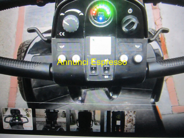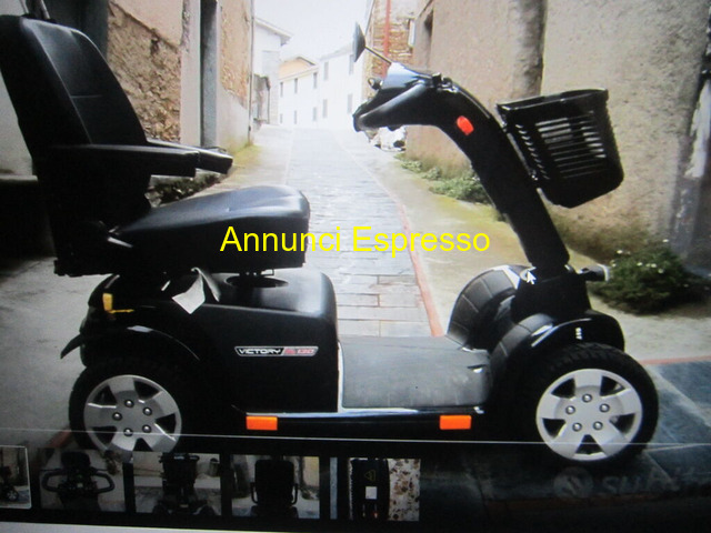 VICTORY Vision ELETTRICO Altro 12cc immatricolata 12 Agosto 4Km prezzo EUR.1.200,00 Privato Scooter elettrico per disabili, colore n>> Scooter elettrico Victory 130 XL per anziani e disabili, ?. LO Scooter Pride VICTORY e, adatto ad anziani disabili, invalidi, obesi con difficoltà motorie--- Full optional completo di due specchietti retrovisori, porta smartphone con chiave START di sicurezza. -. CESTINO ANTERIORE PORTA TUTTO ESTRAIBILE ? DI COLORE NERO- HA un telaio tubolare smontabile in pochi secondi in due pezzi senza l'utilizzo di attrezzi, carenatura in ABS, due ammortizzatori anteriori indipendenti, mono ammortizzatore posteriore, due freni a disco idraulici anteriori, freno elettromagnetico posteriore. Cruscotto con display analogico e spia blu segnala eventuali guasti, --- manometro display che segnala la carica della batteria. Manubrio a Delta appoggia polsi, regolabile tramite frizione avanti e indietro, blocca sterzo con chiave , regolatore di potenza e acceleratore ambidestro, avvisatore acustico e fanali anteriori a led ad alta visibili Gragnano (NA)