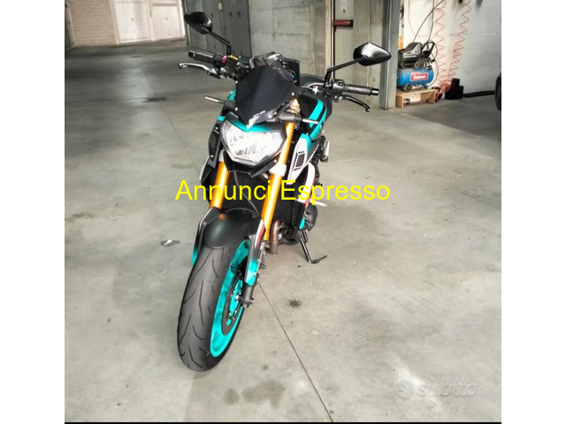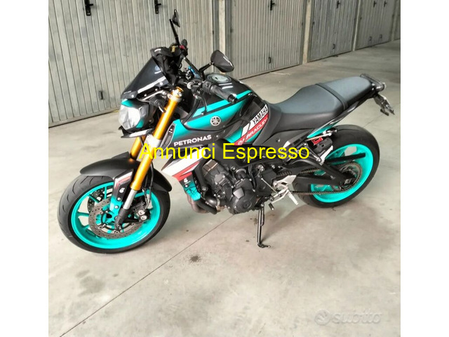 Yamaha MT 09 Naked 900cc immatricolata 2016 Febbraio 50000Km prezzo EUR.5.200,00 Privato Yamaha mt 09 del 2016 tenuta bene modifiche effettuate, mono ammortizzatore mupo regolabile , cartucce andreani più basse di 20mm, ammortizzatore di sterzo Matris, specchi Barracuda, leve Lightech, wrappata , monoposto, borse originali, scarico Fresco e tubi Leovinci, catena pignone corona sostituiti questa estate, gomme mitas. Dispongo di tutti i pezzi original Pianezza (TO)