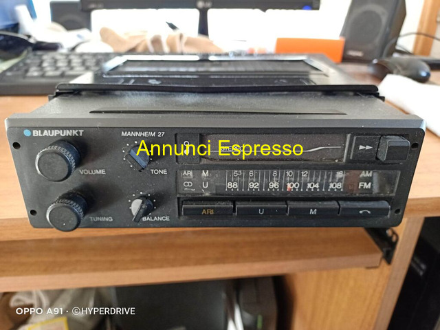 Altro Altro Altro AUTORADIO AUTORADIO BLAUPUNKT prezzo EUR.65,00 Spedizione Si Spese spedizione 9 STEREO PER AUTO ANNI 80 RADIO CASSETTE MARCA BLAUPUNKT MODELLO MANNHEIM 27 COMPLETO DI ESTRAIBILE USATO FUNZIONANTE SONO DISPONIBILE PER INF. FOTO POSSIBILE SPEDIZIONE Autoradio marca Blaupunkt modello Amsterdam 27, usata, con radio AM/FM e lettore cassette, in buone condizioni. Matera (MT)