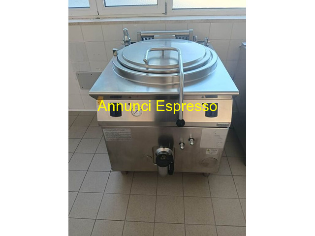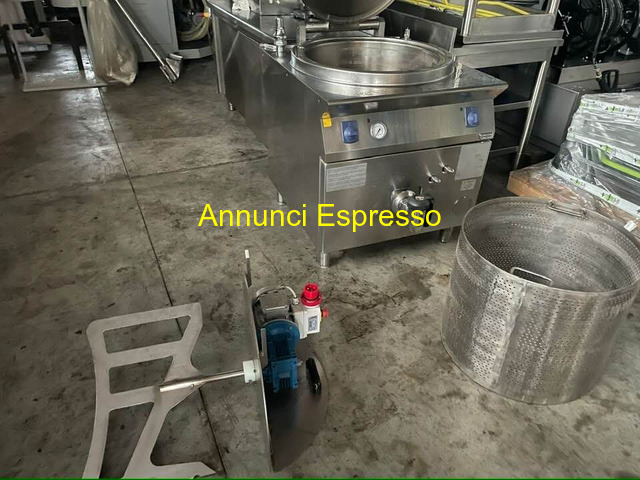BOLLITORE PER CUCINA A GAS ELECTROLUX ELECTROLUX prezzo EUR.3.500,00 BOLLITORE PER CUCINA A GAS ELECTROLUX - RISCALDAMENTO INDIRETTO DA 150 LITRI MODELLO DA APPOGGIO USATO A 3500 EURO TASSE ESCLUSE Il bollitore tondo è adatto per cuocere, sbollentare o cuocere in camicia tutti i tipi di prodotti. Il cibo viene riscaldato uniformemente attraverso le pareti inferiori e laterali del bollitore a doppia camicia, da un sistema di riscaldamento indiretto che utilizza vapore saturo generato integralmente a una temperatura di 110 ° C. La valvola di sfiato manuale consente la fuoriuscita dell'aria dalla doppia camicia durante la fase di riscaldamento. Spedizione in tutta Italia a soli 300 tasse escluse contattaci 0825. 449147 Enrico [NUM] Gianluca [NUM] whatsapp 392. 9622333 visita il nostro sito www. imbriano. it seguici: facebook - Imbriano Macchine Agricole instagram - https://www. instagram. com/imbrianosrl/ Mirabella Eclano (AV)