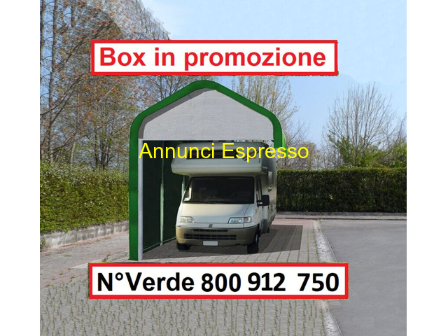 BOX CAMPER-COPERTURE CAMPER-PENSILINE AUTO WWW.DREAMSYSTEM.IT prezzo EUR.268,00 Box per auto in promozione, struttura leggera, ideale per protezione esterna. Contatto: N Verde [NUM] o visita il sito www. dreamsystem. it . Coperture professionali per auto, camper e piazzali auto e rimessaggi camper . Proteggi i tuoi mezzi da grandine, sole e agenti atmosferici con strutture robuste e con certificazione dei materiale. Se hai bisogno di coperture Antigrandine ; Pensiline auto ; Box camper ; Coperture su misura per aziende e privati , chiama il Numero Verde: [NUM] www. dreamsystem. it Sconto del -20% immediato + 50% incentivo . Anche con noleggio con riscatto! Torino (TO)