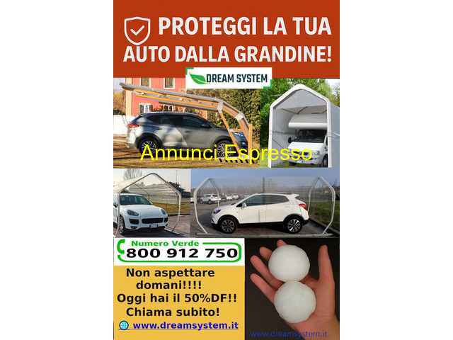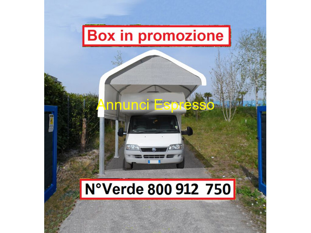 BOX CAMPER-COPERTURE CAMPER-PENSILINE AUTO WWW.DREAMSYSTEM.IT prezzo EUR.268,00 Box per auto in promozione, struttura leggera, in materiale resistente, ideale per proteggere veicoli. Dimensioni e dettagli da verificare. Numero verde disponibile [NUM] o visita il sito www. dreamsystem. it . Non lasciare che la grandine rovini la tua auto o il tuo camper. Con Dream System puoi dormire tranquillo: ti offriamo coperture antigrandine, pensiline, box camper e coperture per piazzali. Approfitta ora dello sconto immediato 20% ed in più in agguanta 50% df. E anche noleggio con riscatto se preferisci per le aziende o anche a rate . ! Numero Verde: [NUM]; www. dreamsystem. it Chiamaci oggi e ti aiutiamo a scegliere la soluzione giusta per te. Ravenna (RA)