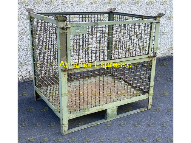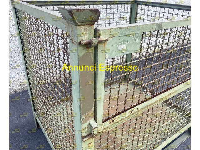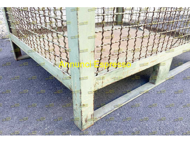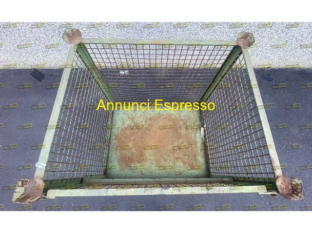 Casse in rete usate POLYCUBE SRL prezzo EUR.1.111,00 ceste in rete metallica elettrosaldata usate: pianale in lamiera liscia con sottostruttura di rinforzo, impilabili ad incastro, con slitta anti ribaltamento sul lato lungo e lo sportellino apribile per il prelievo del materiale anche quando sono accatastati. Lotto di MEDIA QUALITA?, possibili piegature e segni di ruggine superficiale. Misure 1000 x 800 h970. Proposti da Polycube srl, Possibilit? di spedizione anche per piccoli quantitativi. Salvo il venduto. Prezzo, disponibilit? ed ulteriori dettagli su richiesta. Poppi (AR)