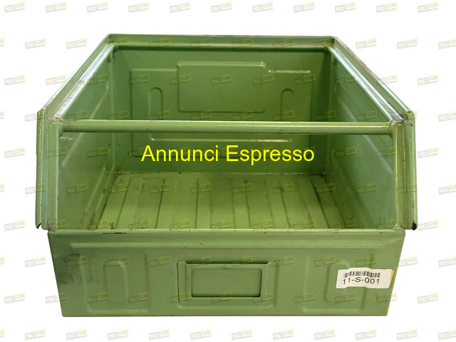 CASSETTE BOCCHE DI LUPO IN METALLO USATE POLYCUBE SRL prezzo EUR.1.111,00 Cassette in acciaio verniciato per minuteria pesante a bocca di lupo corrispondenti al modello 5FP, serie FLS della ditta Fami. Sono accatastabili ad incastro, hanno il traversino frontale e la maniglia posteriore per la presa manuale. Sulla parte frontale c?è il porta etichette. Servono per lo stoccaggio e la disposizione di componentistica anche pesante. Lotto di OTTIMA QUALITA?, pari al nuovo. Misure mm 700 x 450 h300. Prezzi e disponibilità su richiesta a Polycube srl riferimento codice MC037-33. Possibilità di spedizione. Scatola di plastica verde, forma rettangolare, utilizzabile per lo stoccaggio. Adatta per uso industriale o domestico. Dimensioni contenute, robusta e impilabile. Ideale per organizzare materiali o prodotti. Ottima per magazzini. Poppi (AR)