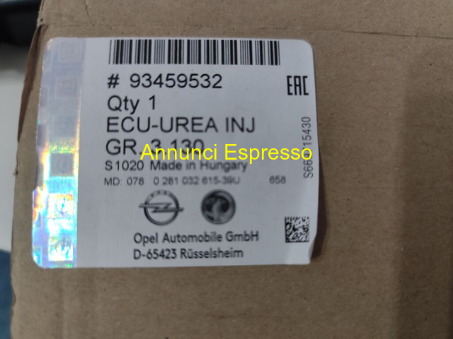 Impianto elettrico Opel Vivaro vivaro 1.6 centralina adblue opel vivaro prezzo EUR.420,00 Spedizione Si Spese spedizione 18 INFO Whats App centralina adblue urea per opel vivaro ed opel movano, renault trafic e master e fiat talento. codice centralina opel [NUM] codice bosch [NUM] codice renault 237G00049R 237G00001R centralina mai montata quindi pronta per essere scritta col vostro numero di telaio, ricambio originale nuovo e non revisionato. possibile ritiro Rimini (RN)
