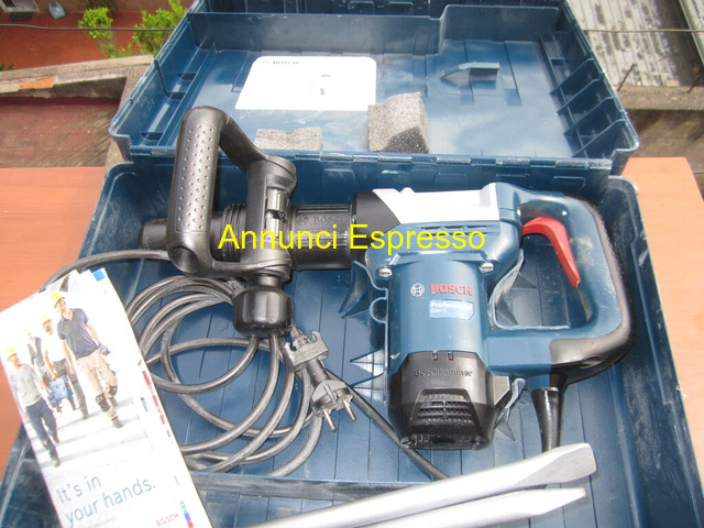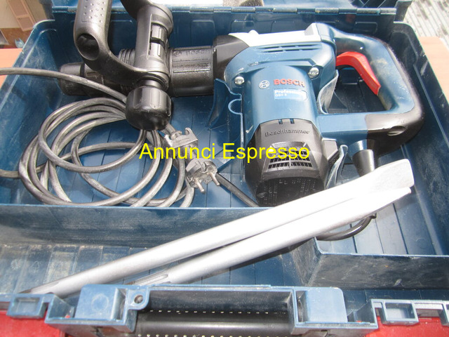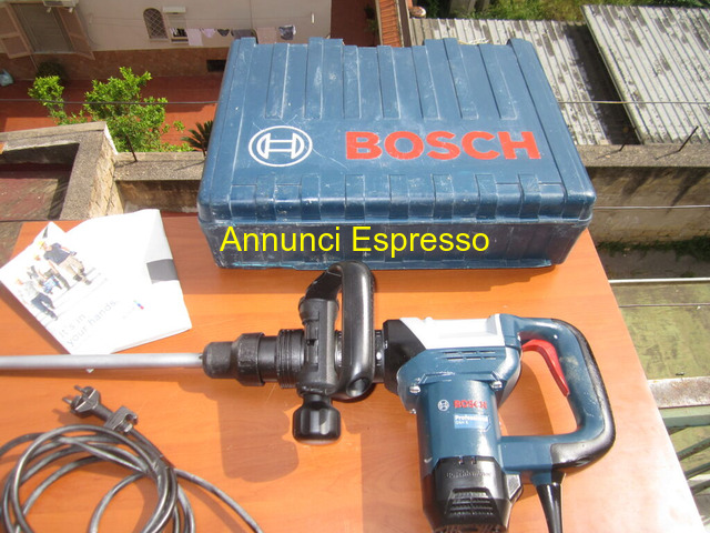 DEMOLITORE-MARTELLO BOSCH GSH 5 ATTACC-SDS MAX 7KG BOOSCH prezzo EUR.280,00 (( TEL [NUM] )) Martello -DEMOLITORE BOSCH GSH 5 ATTACCO SDS MAX PESO 7 KG - ( N. B SOLO DEMOLITORE NO ROTATIVO ) Grazie al suo design compatto ed ergonomico, il martello offre un comfort eccezionale e la massima accessibilità negli spazi ristretti. Effettuare scalpellature e demolizioni con UNA POTENZA DI 8JOLE LO RENDE LEGGERO . Attacco SDS-Max-Potenza assorbita 1100 Watt -Energia del colpo (EPTA 05/2009)-Velocita? di carico 540 Giri/min-Percussioni al minuto 3150-Max. capacità di foratura [Cemento] 80 mm-Max. capacità di foratura [Punte spec. Ratio] 65 -Max. capacita? di foratura [Corona] 100 mm-Peso 6, 9 Kg-Lunghezza 453 mm Altezza 263 mm-Larghezza 108 mm-Vibrazioni mano/braccio - foratura cemento 9. 4 m/s²-Incertezza (Vibrazioni) 1. 5 m/s² IL MARTELLO E IN OTTIMO STATO USURA E STATO ACQUISTATO NEL 2020 AD UN PREZZO DI 450 EURO , ED E STATO USATO PER UNA 20 DI ORE PER LO SCAVO DI BUCHE PER LA MESSA IN PIEDI DI PALI RECINZIONE IL PREZZO E DI 280 EURO INTRATTABILE INCLUSO Sarno (SA)