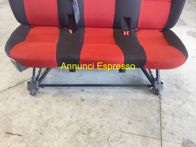 Interni Fiat Ducato panorama fiat ducato 9 posti sedili prezzo EUR.370,00 Spedizione No Sedile posteriore per auto, tre posti, rivestimento in tessuto rosso e nero, con poggiatesta e cinture di sicurezza. Buone condizioni. Cesena (FC)