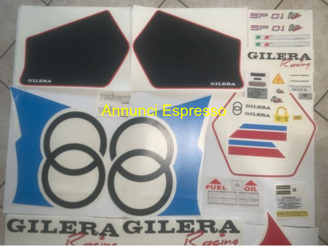 gilera sp 01 kit adesivi gilera sp01 prezzo EUR.1,00 gilera sp 01 kit adesivi come in foto replicati dagli originali vendo kit intero o separato posso spedire o consegna a mano il kit racing non e' compreso con tutti gli adesivi per intenderci i numeri e le coperture faro sono a parte. no perditempo telefono [NUM] whatsapp simone Anzola dell\'emilia (BO)