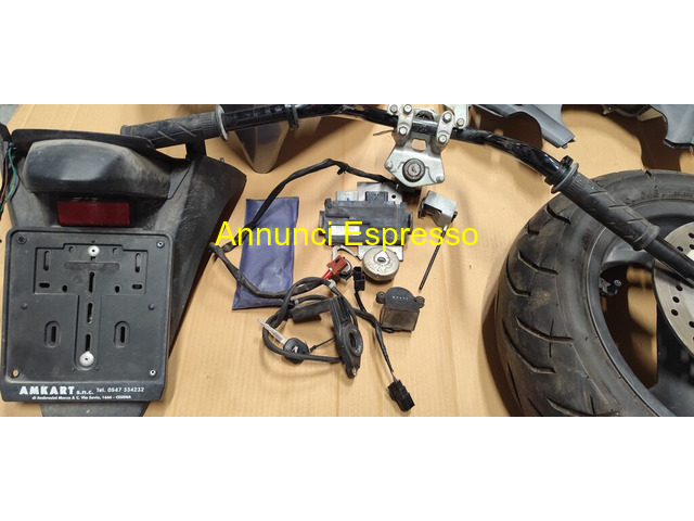 honda sw t400 ricambi honda prezzo EUR.250,00 INFO Whats App [NUM] vendo come da foto ricambi per honda sw t400, perfettamente funzionante ed in buone condizioni , i ricambi al momento disponibili sono quelli che vedete nelle foto di questo annuncio , non ho rimasto altro oltre a questo , le uniche carene rimaste sono il lato posteriore destro con codice 83651 MFT [NUM] MFT 6400 , poi ho rimasto la carena posteriore centrale e la carena del manubrio 53251 MFT 640 , il resto è in foto, marmitta, cerchio e gomma, kit accensione completo con una chiave honda con centralina impianto elettrico serbatoio carburante con pompa e galleggiante , strumento contachilometri con plastica, impianto elettrico completo, portapacchi e pedane passeggero , vendo tutto assieme in un unico lotto , preferito il ritiro a mano , grazie Cesena (FC)