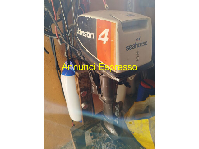 JOHNSON 4 CV CON REGOLARE LIBRETTO JOHNSON prezzo EUR.270,00 Motore fuoribordo marca Johnrude modello Seahorse, potenza 4 cavalli. Condizione usato, adatto per piccole imbarcazioni. Completo di attacchi e controlli. Ottimo per navigazione in acque tranquille. Disponibile per visione e prova. TEL [NUM] FABIO CON 20 . 00 POSSO SPEDIRLO Rimini (RN)