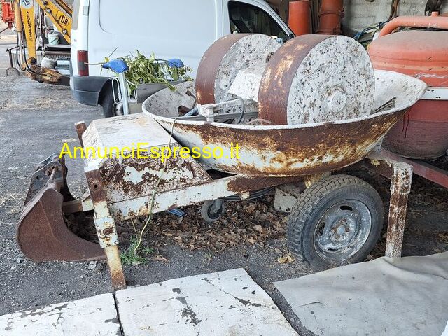 Molazza per impasti - prezzo EUR.1,00 Vendo molazza a bicchiere doppio, ideale per la preparazione di malte e impasti tradizionali in ambito edile. Struttura solida in ferro, completa di ruote per il trasporto e attacco traino. Prezzo trattabile ? ritiro in loco a carico dell?acquirente. Santa Venerina (CT)