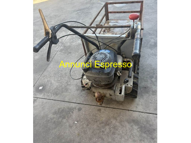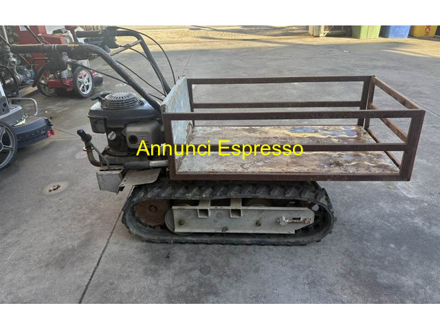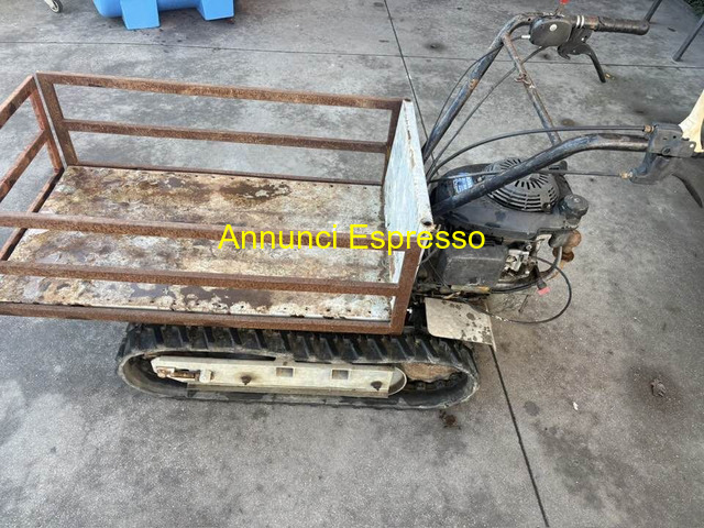 MOTOCARRIOLA USATA IMBRIANO prezzo EUR.500,00 MOTOCARRIOLA USATA A 500 EURO TASSE ESCLUSE FUNZIONANTE È DA REVISIONARE SOLO IL CAMBIO, IL MOTORE E' PERFETTO. SPEDIZIONE IN TUTTA ITALIA A SOLI EURO 100 contattaci 0825. 449147 Enrico [NUM] Gianluca [NUM] whatsapp 392. 9622333 visita il nostro sito www. imbriano. it seguici: facebook - Imbriano Macchine Agricole instagram - https://www. instagram. com/imbrianosrl/ Veicolo cingolato usato per trasporto merci. Struttura metallica con cassone in legno, posiblemente da lavoro. Buone condizioni generali, segni di usura. Adatto per cantieri e lavori agricoli. Non specificato marchio e modello. Mirabella Eclano (AV)