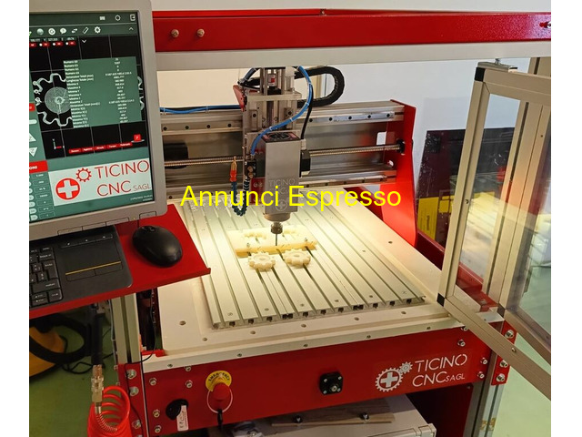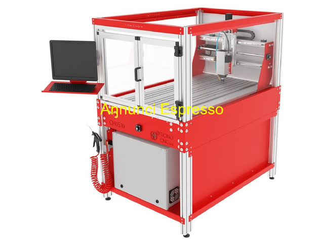 Pantografo cnc, fresatrice corse 600x1010x140mm Ticino cnc prezzo EUR.6.000,00 PRONTA CONSEGNA ! Il MOD. CH0510 ? un pantografo cnc professionale dalle dimensioni compatte, ma si distingue per la sua robusta semplicit? e convenienza. E' possibile lavorare con utensili sia a secco che con lubrificazione umida poich? la macchina, di serie, ? dotata di una vasca di raccolta sottostante al piano di lavoro. Le prestazioni sia dell'elettronica che della meccanica sono notevolmente migliorate rispetto a macchine simili e consente lavorazioni su 3 assi in continuo. La CH0510 si rivela un eccellente strumento per i vostri progetti di lavorazione su alluminio, legno, plexiglass, forex e dibond, garantendo ottimi risultati anche nei progetti pi? complessi. Campochiaro (CB)