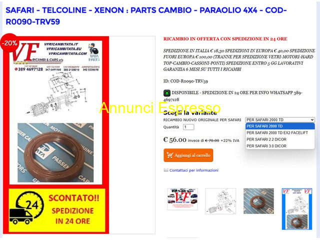 56.00 Euro € PARTS CAMBIO - PARAOLIO 4X4 Pisa