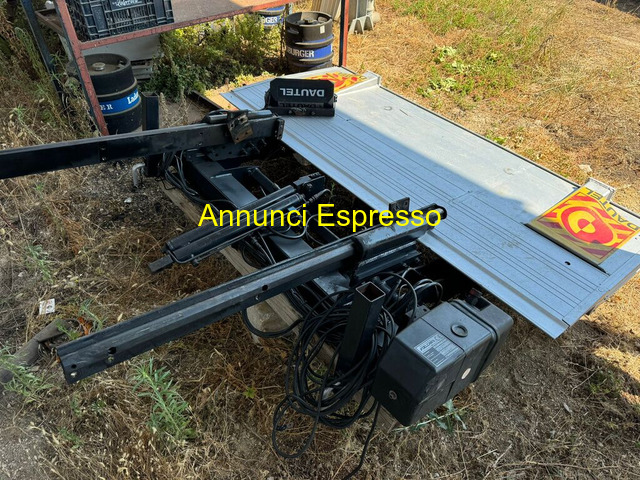 PEDANA DAUTEL Q.LI 7.5 DAUTEL prezzo EUR.1.900,00 X INFO: DOMENICO [NUM] GRAZIE PEDANA DAUTEL Q. LI 7. 5 LARGHEZZA PIATTO 2. 10 X 1. 60 COMPLETA DI DOCUMENTI E PROVENIENZA TELECOMANDO RICHIESTA ? 1900 Piattaforma di carico per veicolo, struttura in metallo, ideale per trasporti e movimentazione merci. Condizioni buone. Andria (BT)