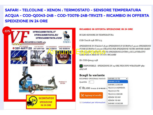 - Questo sito non è coinvolto in nessuna transazione e non gestisce pagamenti, acquisti, le transazioni di garanzia, servizi di pagamento elettronici, o offerte di "protezione dell'acquirente" o "certificati di vendita"