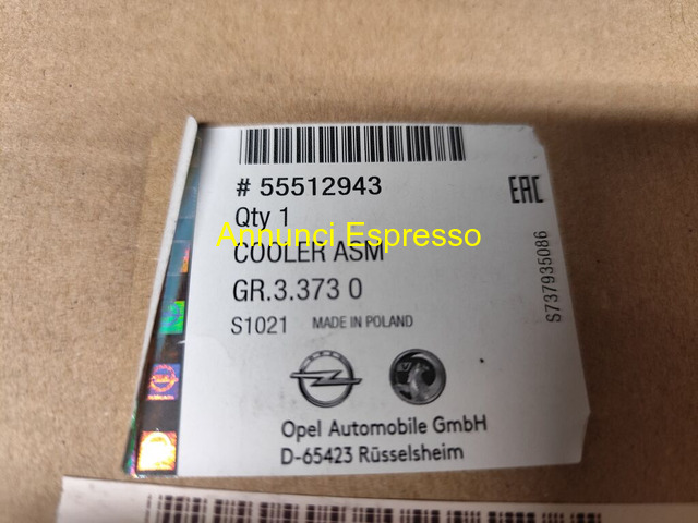 Motore Opel Astra 5ª serie astra k radiatore intercooler opel astra k prezzo EUR.250,00 Spedizione Si Spese spedizione 15 info [NUM] vendo radiatore scambiatore aria acqua originale gm per opel astra k e opel insognia b con motore 1. 5 diesel 3 cilindri, il radiatore ? nuovo originale e nella sua scatola, codice del radiatore [NUM] possibile ritiro di persona. grazie Cesena (FC)