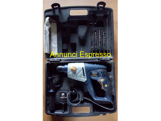 Tassellatore trapano compleo di tutto 220 Volt MAC prezzo EUR.100,00 Tassellatore trapano completo di tutto 220 Volt In valigetta marca MAC 750 Watt velocità regolabile , va avanti e indietro punte SDS mandrino manico di presa asta di profondità pulsante elettronico con regolazione velocità e potenza selettore trapano o percussione ritiro su Grosseto o spedizione. Utensile elettrico completo di accessori, custodia rigida inclusa, ideale per lavori di precisione e fai-da-te. Grosseto (GR)