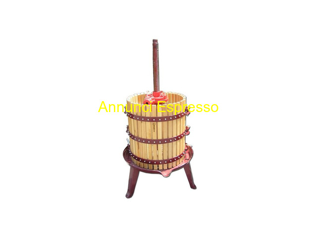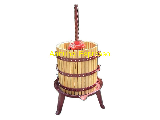 TORCHIO A LEVA MANUALE TL 30 cm IMBRIANO prezzo EUR.315,00 NOVITA' TORCHIO A LEVA MANUALE TL 30 cm OFFERTA A 315 EURO Paga fino a 12 rate da 26, 25 ? senza interessi Torchio a leva manuale TL 30 Diametro interno della gabbia 30 cm Chiamato anche torchio razionale, ? per eccellenza il macchinario fondamentale per l'enologia, in quanto permette di spremere le vinacce dopo la fermentazione alcolica. Prodotto interamente realizzato in Italia con materiali di prima scelta. Vite in acciaio trafilato Gabbia in doghe di faggio evaporato con perni sfilabili Movimento a cricco in ghisa Bacino raccolta mosto in acciaio rinforzato con fazzoletti Dimensioni gabbia: diametro 30 cm, altezza 40 cm Vite diametro: 30 mm Capacit? vinaccia: 30 L Peso totale: 39 kg SPEDIZIONE IN TUTTA ITALIA A SOLI EURO 35 contattaci visita il nostro sito imbriano it seguici: instagram - imbrianosrl Pressa per uva in legno, struttura circolare con barra centrale, utile per la vinificazione, in buone condizioni. Et? non specificata. Mirabella Eclano (AV)