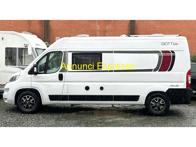 Giottiline Giottivan 60T immatricolata 2024 Novembre colore bianco 3020Km prezzo EUR.54.900,00 Ducato 140 cv, immatricolato a novembre 2024, solo 2900 km , vendesi per mancanza di tempo d'utilizzo. Non devo realizzare, non ho bisogno, già è un prezzo che in 9 mesi perdo tantissimo! Ma in caso di non vendita rimane tranquillamente al coperto dov'è attualmente. Il camper è corredato di portabici, pannello solare 120 kw, batteria servizi litio 100 A , TV smart 20". 2 materassi matrimoniali( uno originale) l' altro 14 cm misto memori mai utilizzato, frigo a compressore da 135 lt, doccia separata e bagno passante, riscaldamento e acqua calda Combi 4 diesel, il gas serve solo per i fornelli, antifurto perimetrale e volumetrico, chiusura centralizzata su tutte le porte, il modello con pacchetto Privilege. . . . su youtube ci sono i video descrittivi, come ho detto è nuovo!! Autoradio Pioner 7 " di ultima generazione. . Bassissima trattabilità!!! Cirie\' (TO)